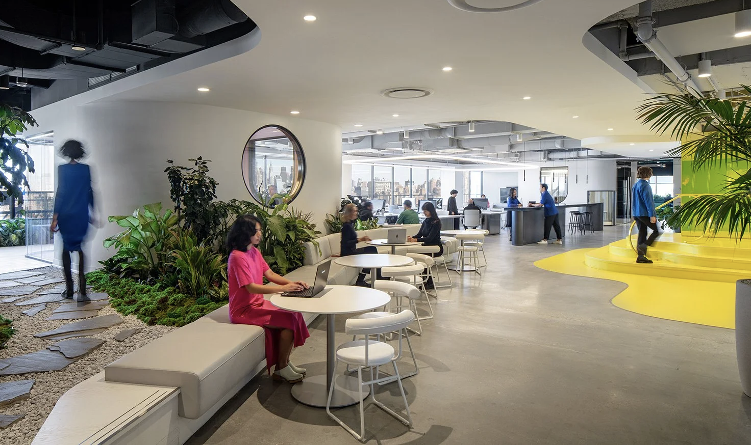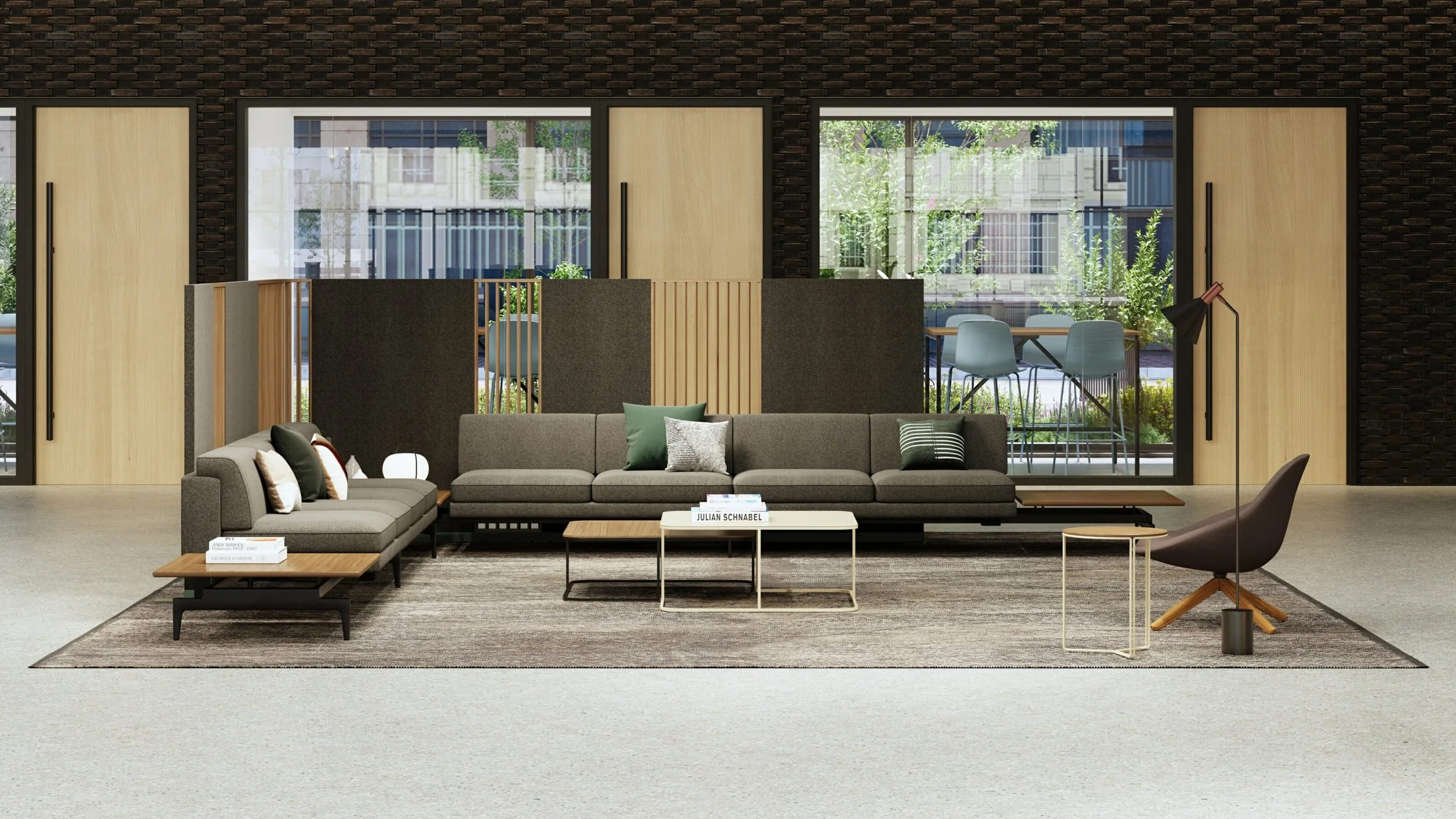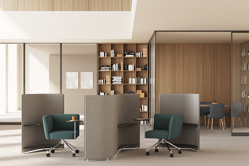 This is where furniture stops being fixed and starts being tested. Tables shift. Seating moves. Power appears where it’s needed.