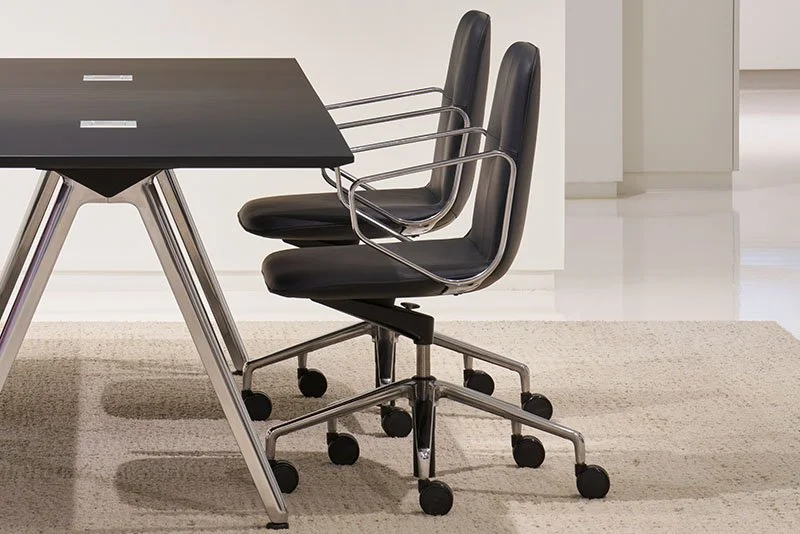 With or without integrated power, fixed or mobile, some tables are designed to move as spaces adapt. Others are built to stay put — expressing permanence, confidence, and longevity. In select collections, table finishes can be coordinated directly with chair bases and arms, allowing metals, woods, and colors to align across the room rather than limiting executive spaces to standard black or polished aluminum.